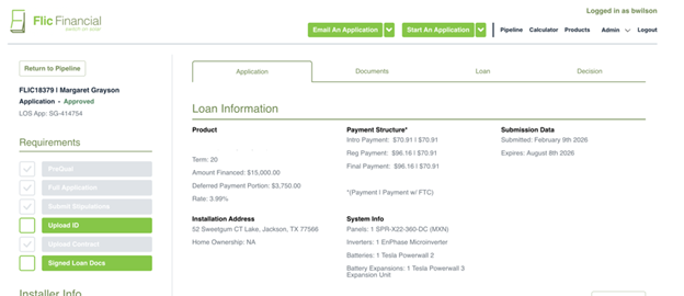 “I’ve been in the solar business for nearly six years now and Flic Financial is hands down the most user-friendly partner I’ve ever worked with. The application process is fast and entirely online, making it easy to get qualified for solar financing. The quick credit approval is fantastic, but their entire staff helps streamline the process of getting a project started quickly!”